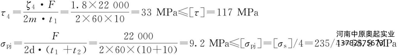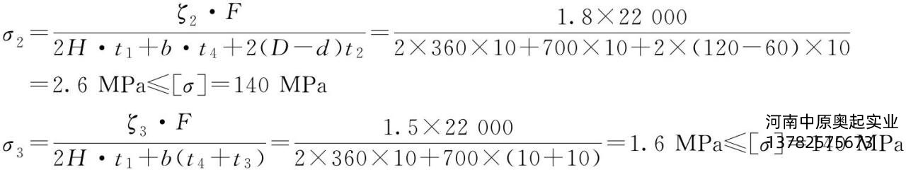 t1=10mm;t2=10mm;t3=10mm;t4=10mm;b=700mm;h=320mm;H=360mm;F=22000N;d=60mm;D=120mm;ζ1取2.8;ζ2取1.8;ζ3取1.5;ζ4取1.8;m=60mm;?。
