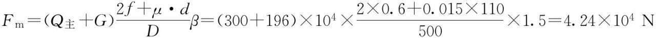 坡道阻力Fp=(Q主+G)×sinα=(3000000+1960000)×0.001=4960N