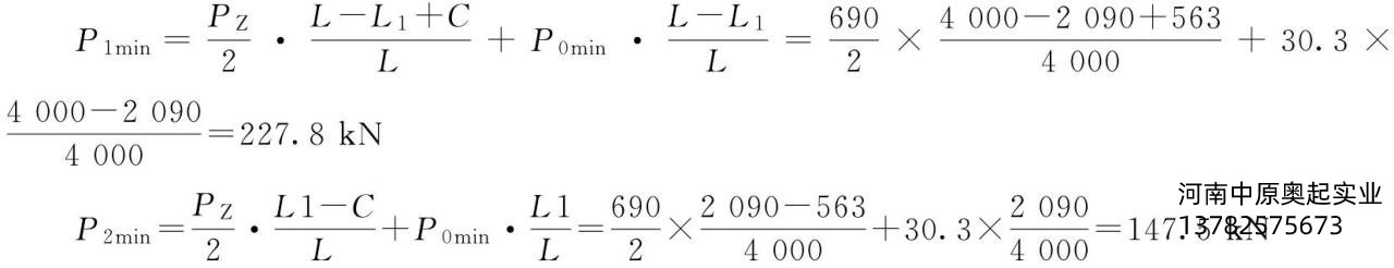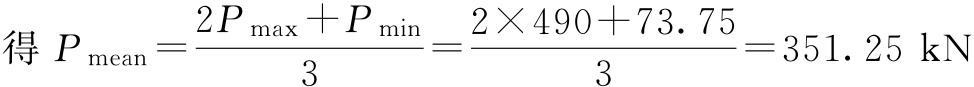 Pmin取P2min/2和P2min/2的小值,Pmin=147.5/2=73.75(kN);Pmax=490kN。